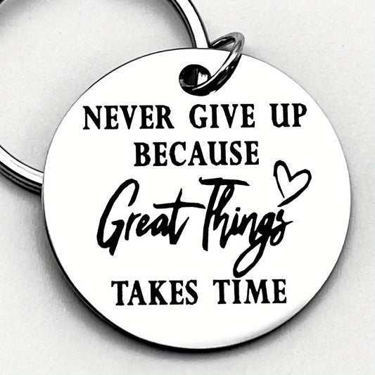 Inspirational Stainless Steel Keychain – Never Give Up Motivational Gift for Encouragement