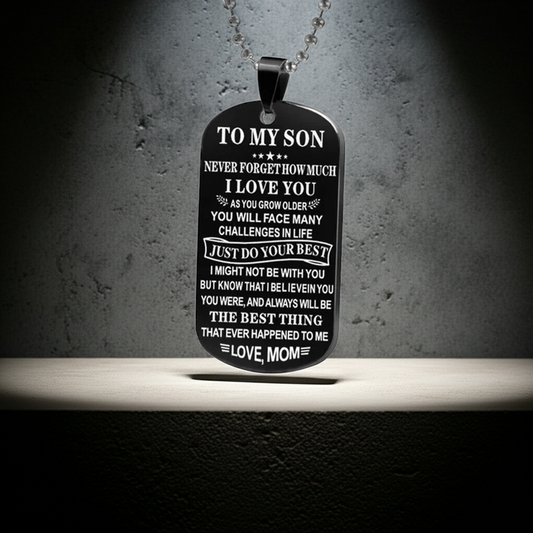 Custom Engraved Dog Tag Pendant Unbreakable Family Love Parent to Child Necklace