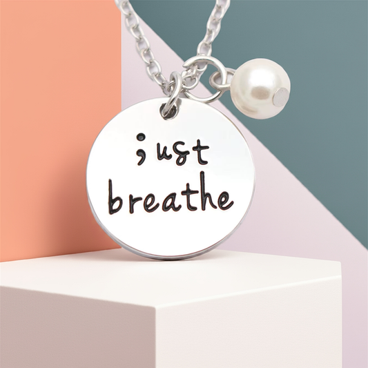 Just Breathe Semicolon Mental Health Pendant Keychain
