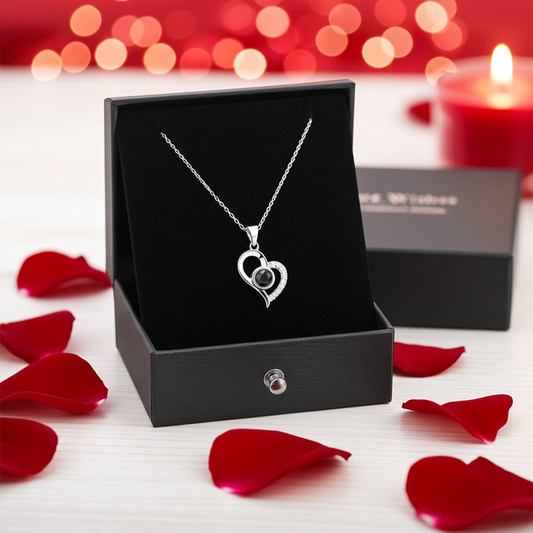 Heart Shaped Red Rose Projection Necklace with Gift Box Romantic Jewelry
