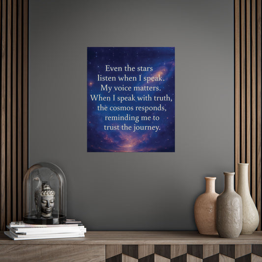 Cosmic Affirmation Poster — "Even the stars listen when I speak" Motivational Wall Art