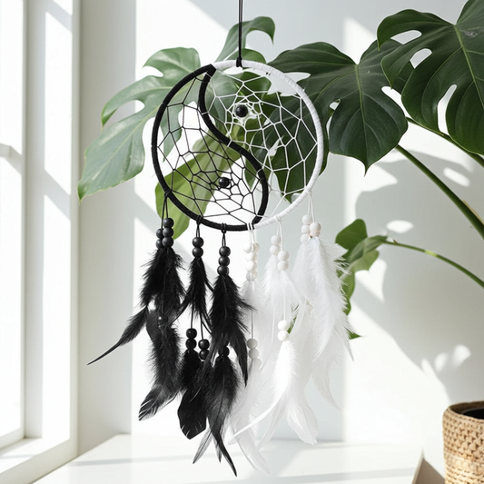 Yin and Yang Feather Dream Catchers Black and White Spiritual Wall Decor