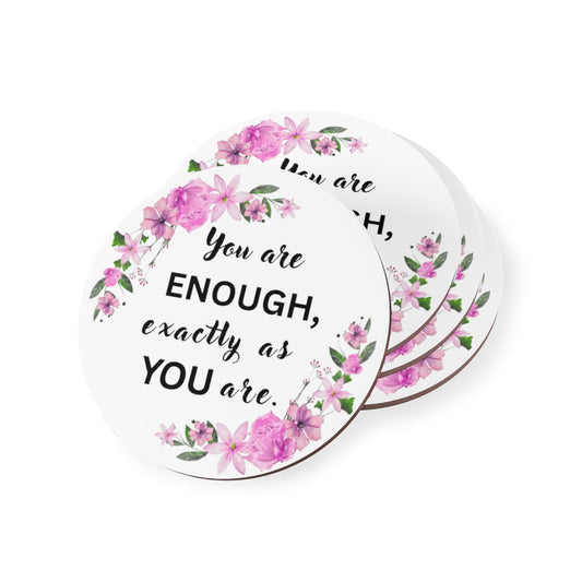4 PCS You Are Enough Floral Coasters – Inspirational Home & Self-Care Gift