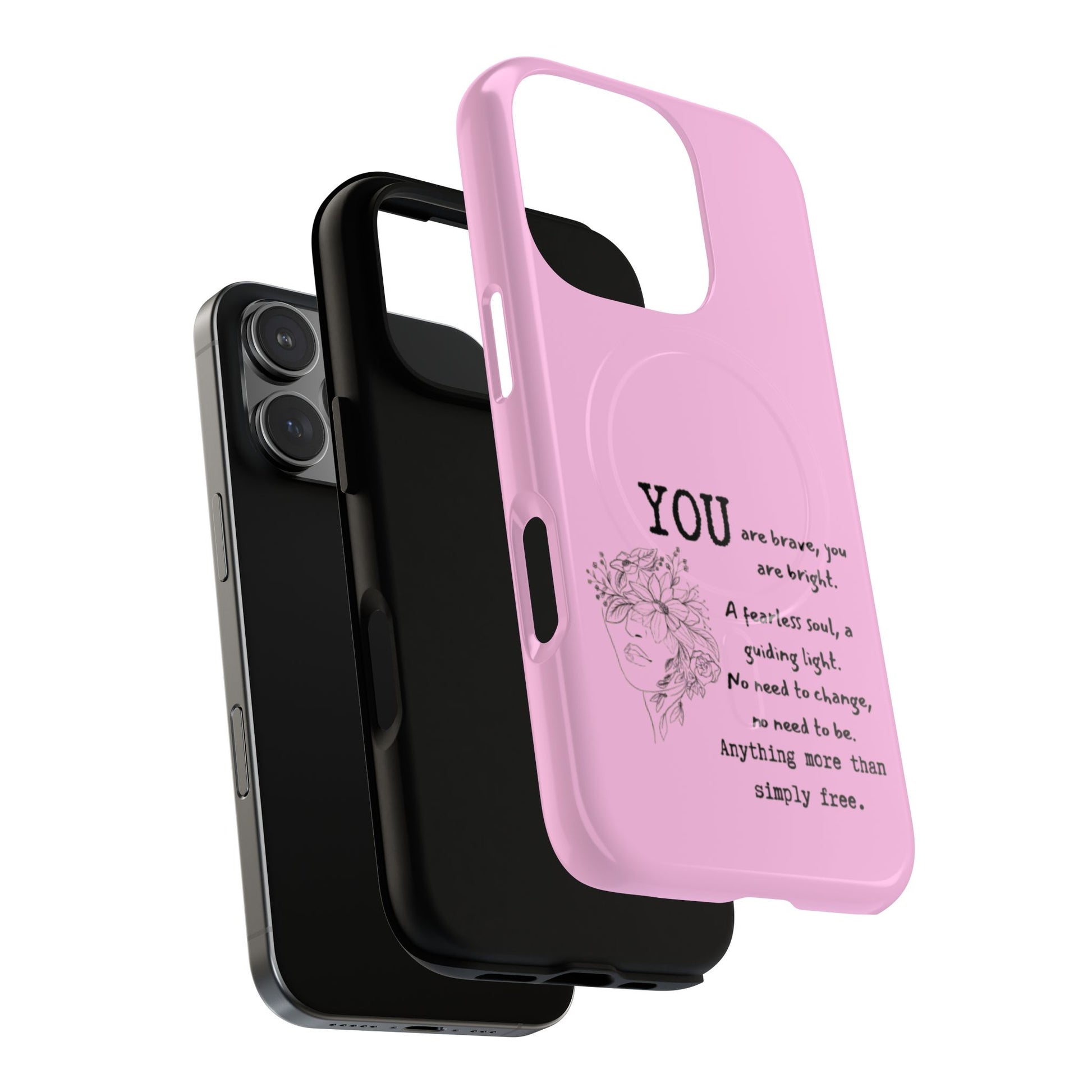 Introducing our Tough Magnetic Cases, designed for those who value both style and protection. These cases feature inspiring messages that resonate with the fearless spirit, offering more than just defense for your phone. Perfect for everyday use, they bring a touch of motivation wherever you go. The dual-layer design ensures maximum durability, making it an ideal choice for active individuals. Whether it’s a birthday, graduation, or a self-care treat, this phone case makes a thoughtful gift for friends or family members who cherish encouragement. It's perfect for anyone looking to express their unique personality while keeping their device safe and stylish.