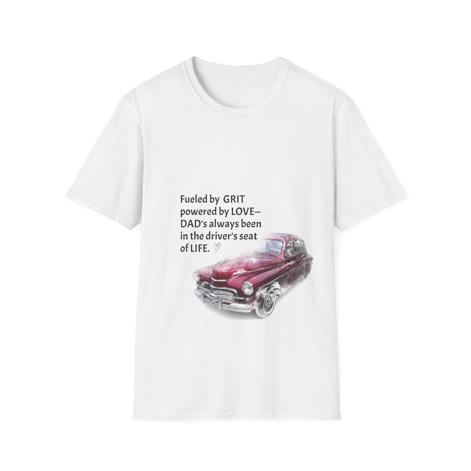 Celebrate the strength, love, and quiet leadership of the man who's always been in the driver's seat of life. This “Fueled by GRIT, Powered by LOVE” Unisex Softstyle T-Shirt is more than just apparel — it’s a tribute to the resilient, dependable dads who guide with heart and lead with purpose.