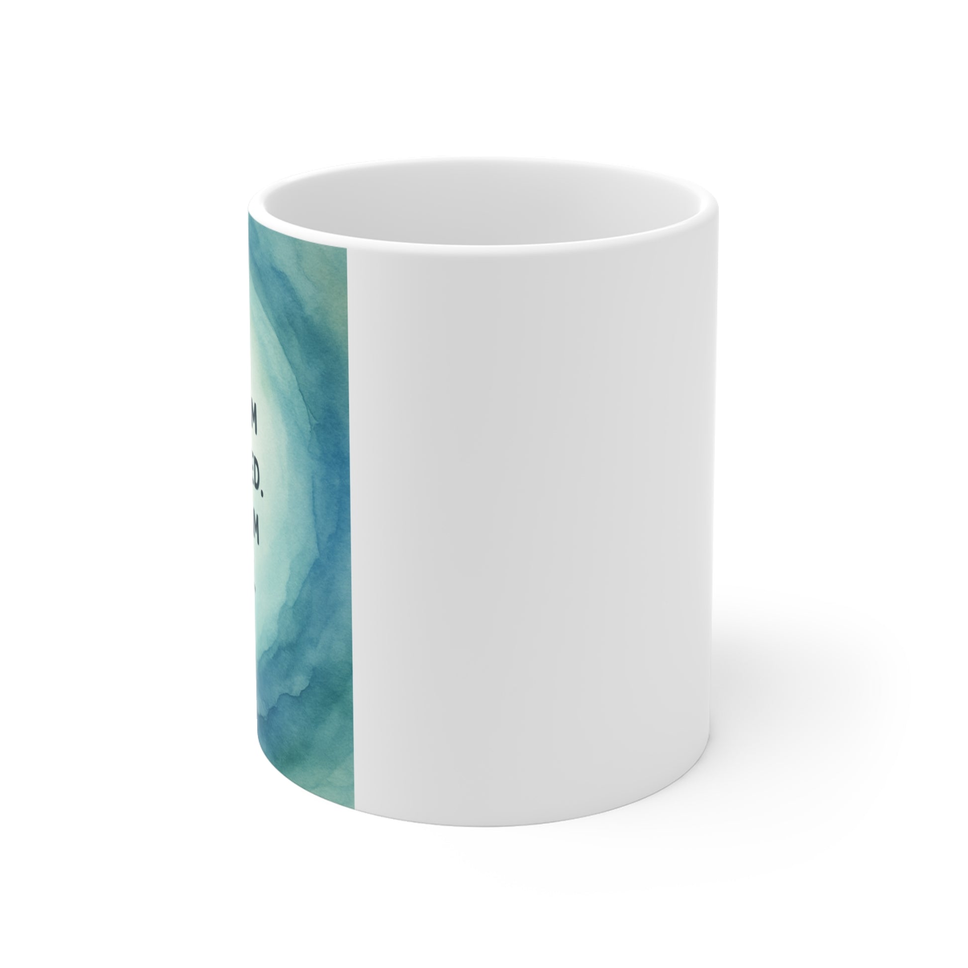 Gentle watercolor rings in ocean blues surround a short affirmation: “Here, I am protected. Here, I am whole.” It’s the kind of cup you reach for when you need a quiet moment: to breathe, to center, to remind yourself that safety and wholeness are possible right now.