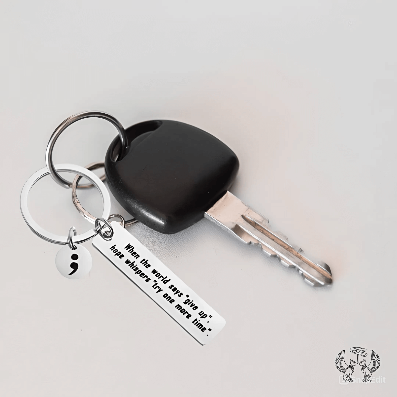 Inspired by the powerful symbol of the semicolon which represents the choice to continue a sentence rather than end it. This keychain is a beacon for anyone facing challenges, big or small. It's for those moments when life feels overwhelming, when you feel like you're about to give up, but that quiet voice inside whispers: “You are stronger than you think.”