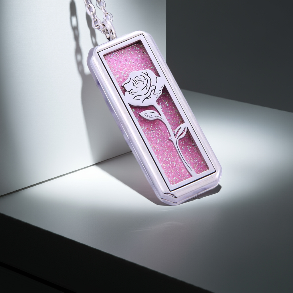 Square Aroma Locket Necklace – Magnetic Stainless Steel Essential Oil Diffuser Pendant